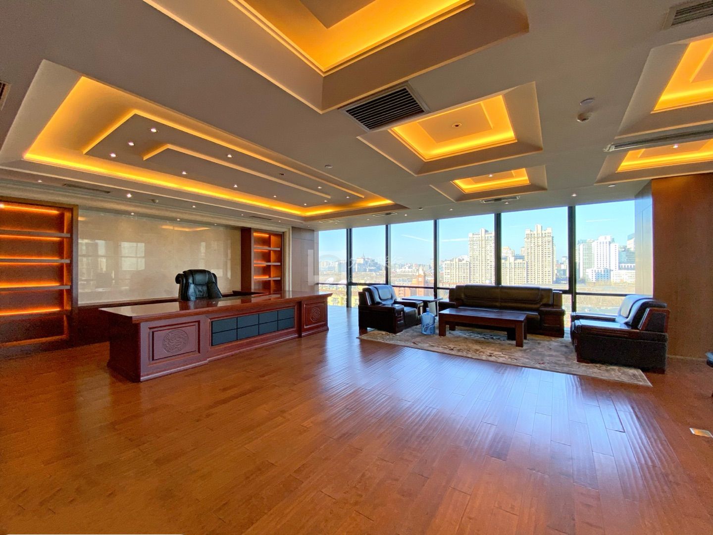 4.装 修:金融办公装修,高端大气,内部分割老板间、经理室、会议室、洽谈室、财务室、茶水间、打印区、储藏室等,户型方正,布局合理无浪费,9成新全套家具,看您需求可以免费争取到,B1停车方便,有员工餐厅